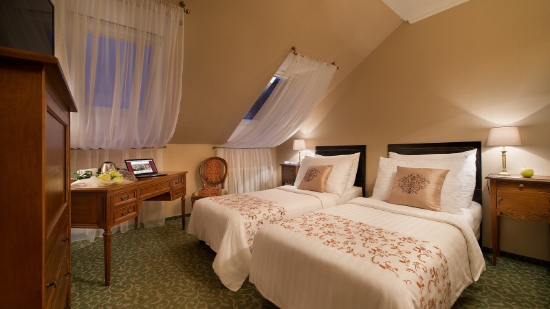 Klimatizace - vlastní příslušenství - pracovní stůl - Wifi připojení na internet-zdarma - malá lednice - osobní safe - satelitní TV - telefon s přímou volbou - rychlovarná konvice + čaj - vysoušeč vlasů - ručníky - hotelová kosmetika - dětská postýlka (na vyžádání)